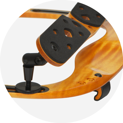 Die Schulterstütze hat eine vorgeformte Biegung, die komfortabel für die meisten Spieler ist. Einige Spieler stellen fest, dass sich die dünne Holzschicht mit der Zeit an die Form ihrer Schulter anpasst. Falls eine andere Form gewünscht wird, entfernen Sie die Stütze und verändern sie vorsichtig die Biegung.