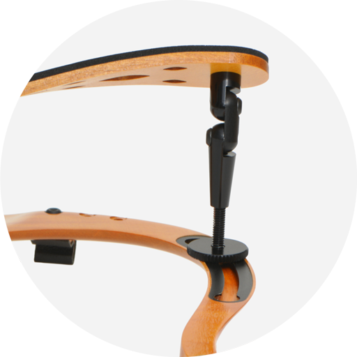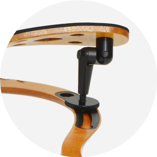 Der Abstand zwischen den Hakenfüßen kann entsprechend dem verwendeten Kinnhalter verändert werden und die Positionen der Kugelfüße können den unterschiedlichen Modellen von 4⁄4-Geigen angepasst werden.