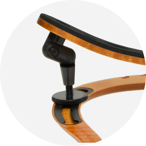 Die Schulterstütze wurde so entworfen, dass sie möglichst komfortabel für ein breites Spektrum an Spielern ist. Einfache Anpassungen können vorgenommen werden, indem die zwei Feststellscheiben gelockert und die Beine der Schulterstütze in die gewünschte Position gebracht werden. Anweisungen zu weiteren Anpassungen von Höhe, Neigung und Form der Schulterstütze finden Sie in der ausführlichen Gebrauchsanweisung.